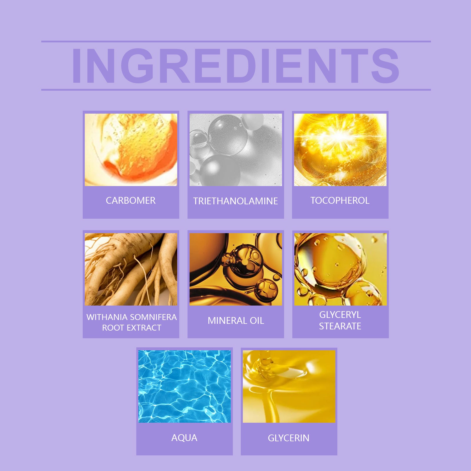Ashwagandha Root Extract: Known for its properties, this natural extract helps support skin elasticity and resilience.