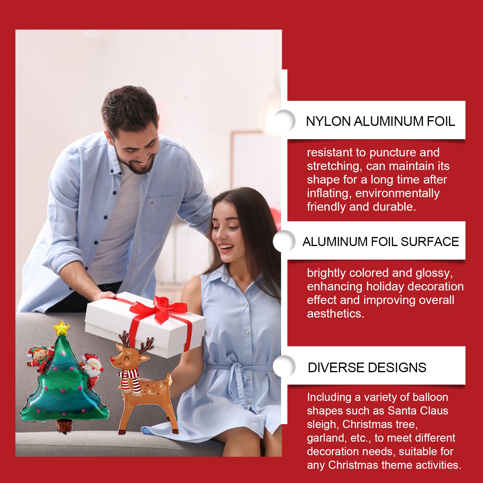 Vibrant & Festive Designs: Bright, oversized, and colorful, these balloons instantly elevate your party's mood. The lifelike and adorable designs of Santa's sleigh, reindeer heads, and gift boxes are sure to delight both children and adults, making them perfect as a stunning photo backdrop.