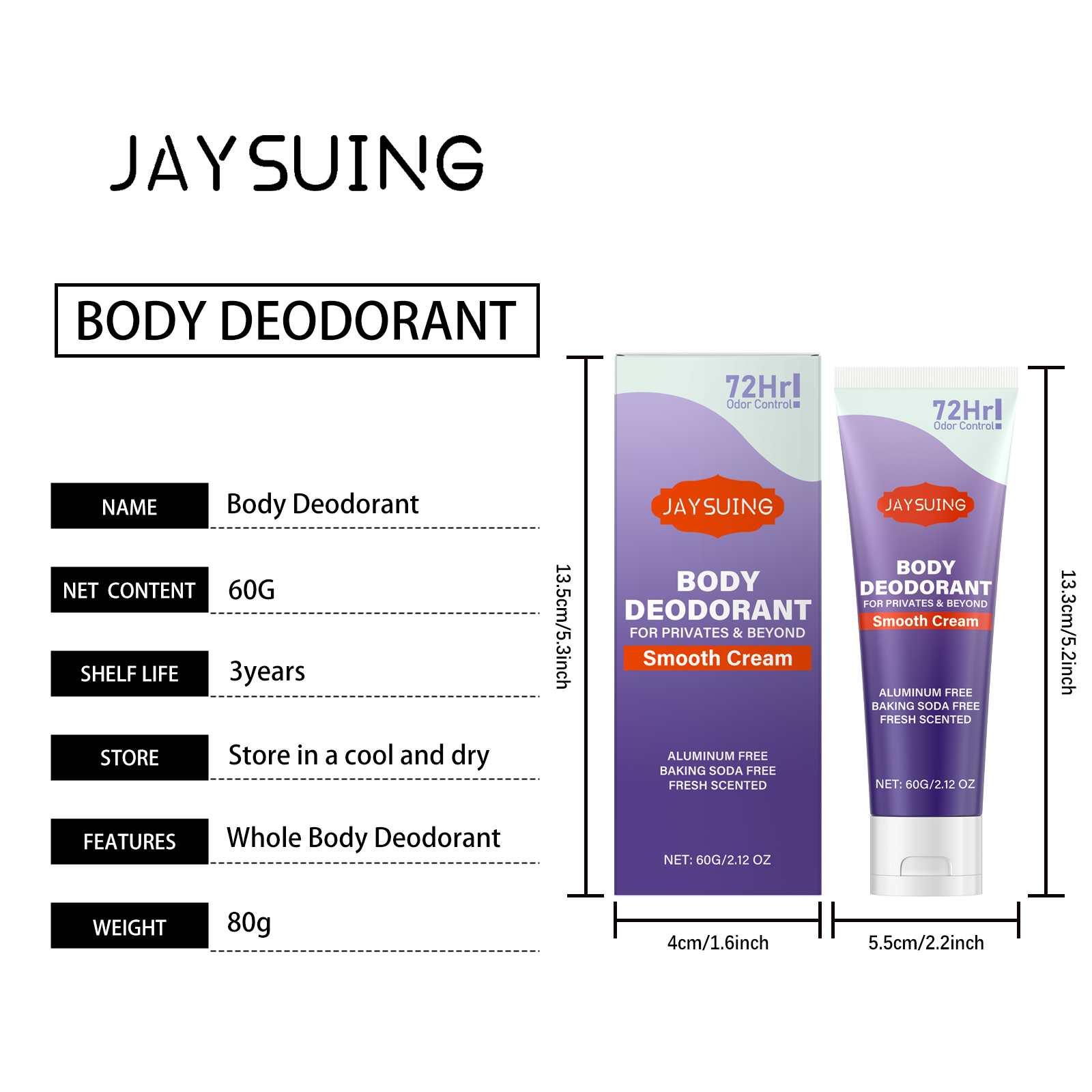 Discover the refreshing experience of Jaysuing Vanilla Body Care Cream. This lightweight formula absorbs quickly to provide long-lasting freshness and a delicate vanilla scent. Enriched with Vanilla Extract and Hyaluronic Acid, it helps moisturize and soften skin while neutralizing unwanted odors. The non-greasy, non-sticky texture ensures comfortable wear, making it suitable for all skin types, including sensitive skin. Use daily to keep your skin feeling smooth, fresh, and subtly fragranced. Ideal for on-the-go freshness, this body cream is your perfect companion for confident, all-day comfort. Note: This product is intended for cosmetic use to enhance skin appearance and provide a pleasant fragrance. It is not designed to treat or prevent any medical conditions.